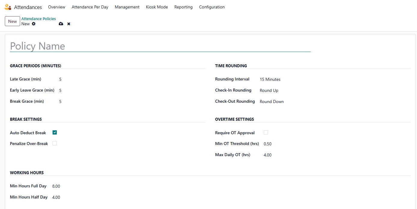 Set grace periods, rounding rules, break deductions, and overtime approvals — all customized to match your company policies and labor rules.