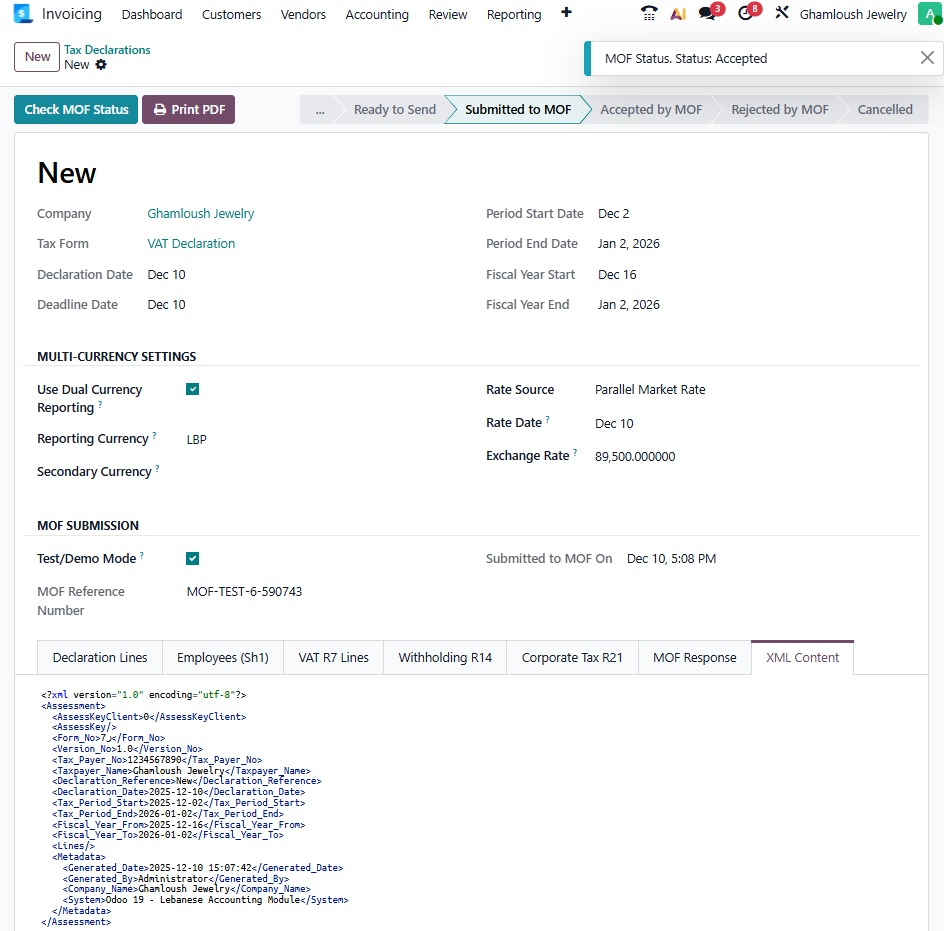 Tax declaration to accepted by MOF