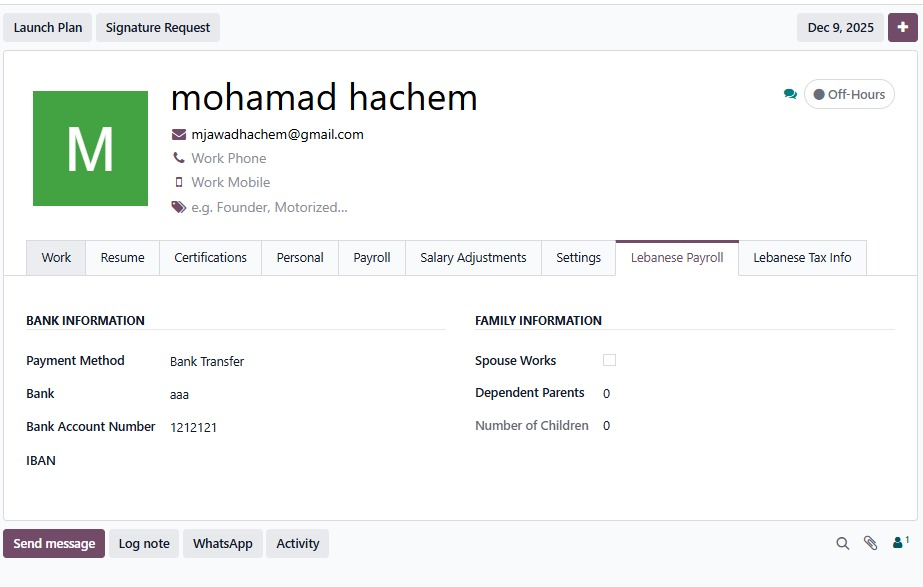 The BLINKOM Payroll Solution centralizes all key employee information and compliance settings in one seamless interface. From secure bank details and family records to tax registration, NSSF contribution rates, employment dates, and exemptions, everything is organized for smooth processing. With BLINKOM’s solution, your payroll becomes accurate, compliant, and effortlessly aligned with Lebanese regulations.