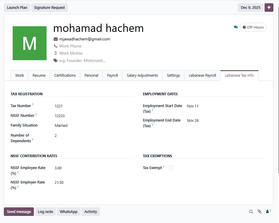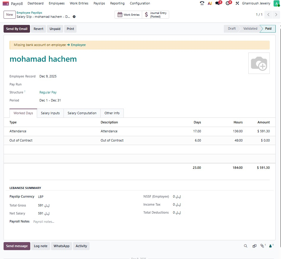 Our Lebanese Payroll Solution built on Odoo helps you handle payroll with ease and accuracy. It automatically manages salaries, overtime, deductions, attendance, taxes, NSSF rules, and all local requirements. Everything works inside one unified Odoo system, giving you a smooth payroll cycle every month without manual effort or errors.